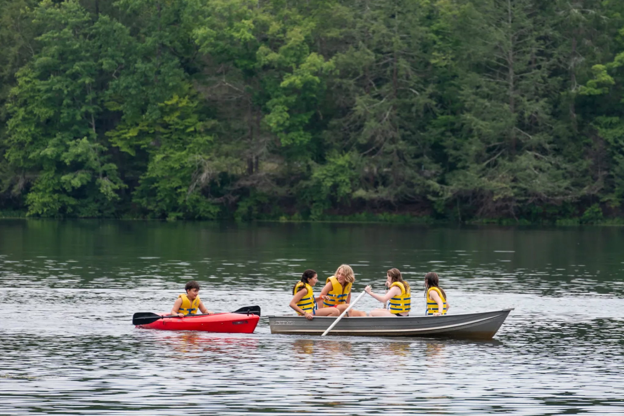 Campers spend these summer days swimming, fishing, paddle boarding, and boating on the lake, as well as hiking and crafting with their groups. Every day begins with the whole camp gathered for joyous singing and a story that stretches out over the course of 2 weeks. And every night ends with more singing, more stories, campfires, star-gazing, and plenty of laughter. Creativity, community, and deep bonds of friendship are the signatures of Camp Harmony Lake.